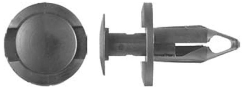 GM, Chrysler & Ford, Front Fender Mud Skirt & Fender Liner Push-Type Retainer, Black Nylon. Head Diameter 11/16 Inch, Stem Length 9/16 Inch, Fits Into 1/4 Inch Hole. GM, Chrysler & Ford 1981 – On. Compare with: Auveco #12567, 14007, G.M. # 14019205, GM # 14019206 Ford # E308-4A163CA, E3084A163CA, Chrysler # 06504090 Chrysler # 34201621, Car Pak # 82-5486, 825486, Disco # 5675PK, 5675B, W&E # 2216, Barnes / Kar # 1373, Crest / Midwest # CRX457, CRX7616, Kent / Lawson # P80651, Winzer # 502.3056, Wurth # 150155117, S&R # 415505, Kimball / Midwest # 10970