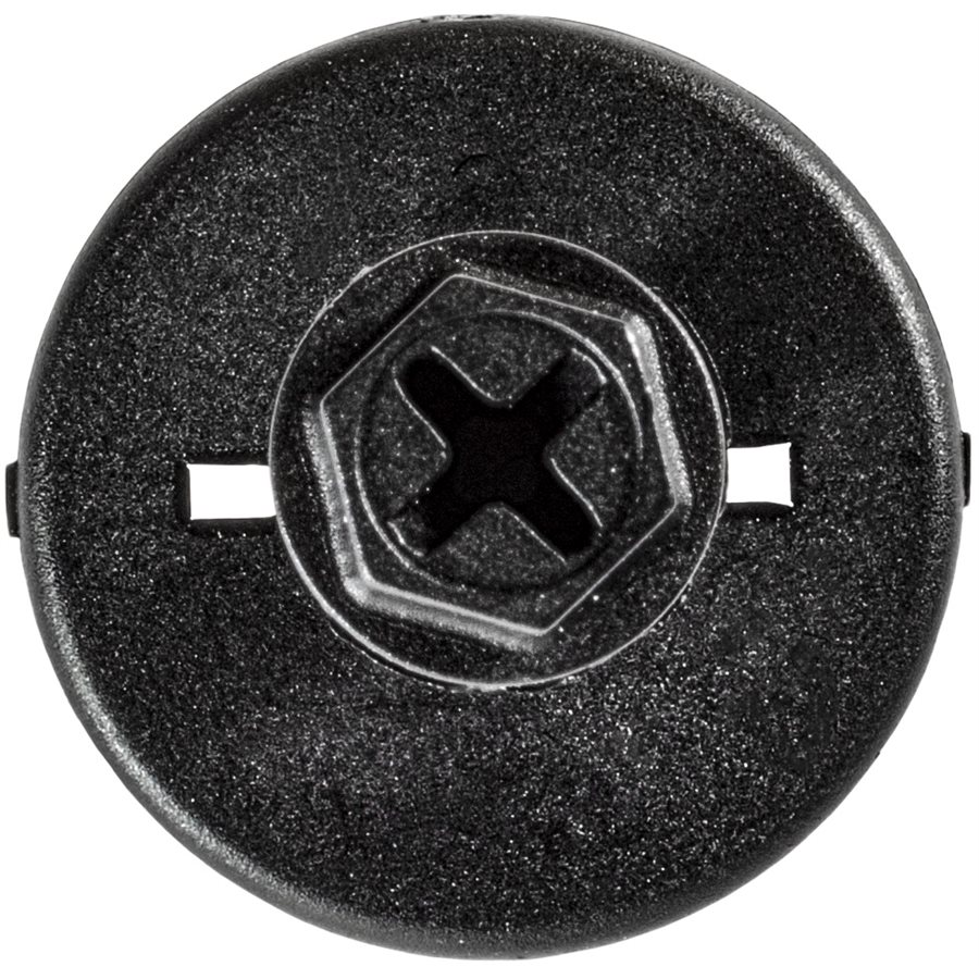Ford, Upper Hood Retainer, Black Nylon. Phillips Hex Push Type Retainer, Head Diameter 3/4 Inch, Stem Length 1/2 Inch, Fits Into 1/4 Inch Hole. Tempo & Topaz. Ford # N802737-S