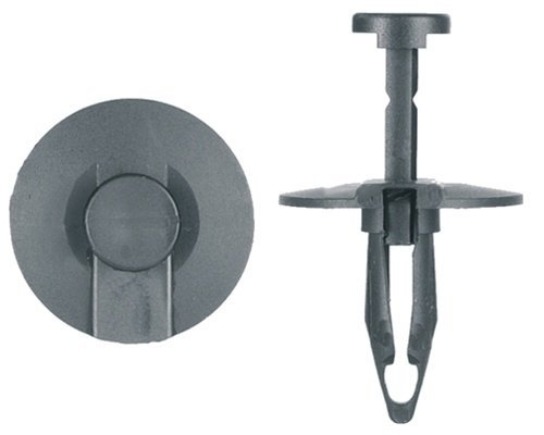 Ford & Chrysler, Splash Shield & Fascia Retainer, Black Nylon. Head Diameter 1 Inch (25mm), Shoulder Length 1/8 Inch (3mm), Stem Length 7/8 Inch, Fits Into 5/16 Inch (8mm) Hole. Ford # Compare To: Auveco # 14019, Ford # N803421-S, N803421S, Chrysler # 6501590, Car Pak # 84-5841, 845841, W&E # 2458, Barnes / Kar # 323, Crest / Midwest # CRX609, Disco # 1263PK, 1263B, Winzer # 502.4035, Wurth # 150155146, S&R # 415126, Kimball / Midwest # 12870