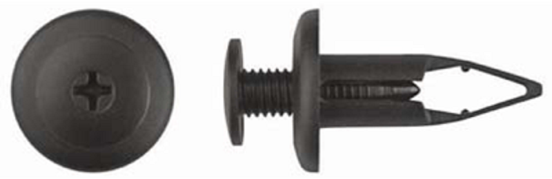 Toyota, Bumper Cover, Black Nylon. Push – Type Retainer, Head Diameter 18mm, Stem Length 26mm, Fits Into 9mm Hole. Avalon, Camry, Corolla & Solara 1998 – On. Compare To: Auveco #19739, Toyota # 90467-09127, Car Pak # 98-7855, Barnes / Kar # 98-7855, Crest / Midwest # CRX15432, Disco # 9646PK, Kent / Lawson # KT11715, Winzer # 501.24000, Wurth # 150155646, Kimball / Midwest # 13249