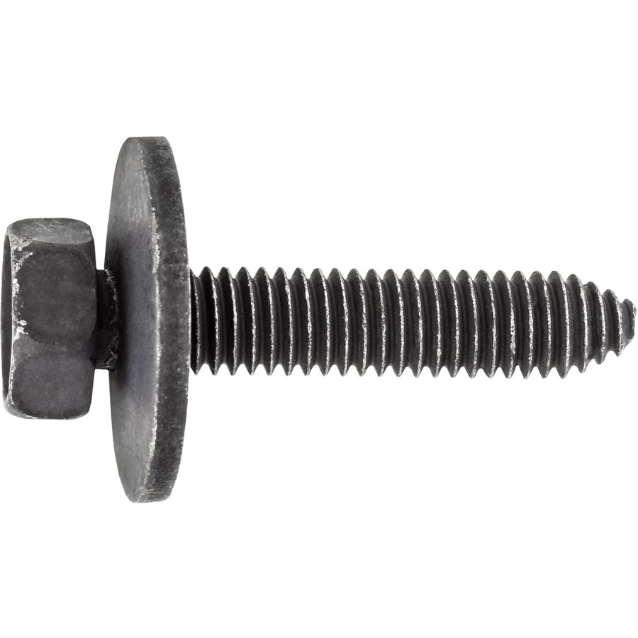 GM & General, Hex Head SEMS Body Bolt With Loose Washer & Starter Point, Phosphate. Full Thread, Bolt Diameter M6 – 1.0, Length 30mm, Washer Diameter 20mm, Hex 10mm, Grade 9.8. GM # 10287379A, # 10287379