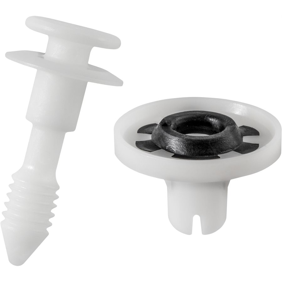 GM, Door Panel Retainer & Grommet Set,White Nylon with Seal. Top Head Diameter 13mm, Bottom Head Diameter 16mm, Stem Diameter 8.75mm, Stem Length 26mm. Overall Length 32mm, Hole Size 9mm, Flange Diameter 24mm, Panel Range 1mm. Disco # 10532. Olds Alero & Pontiac Grand AM 2002 – On. GM # 10363811, 22722859.