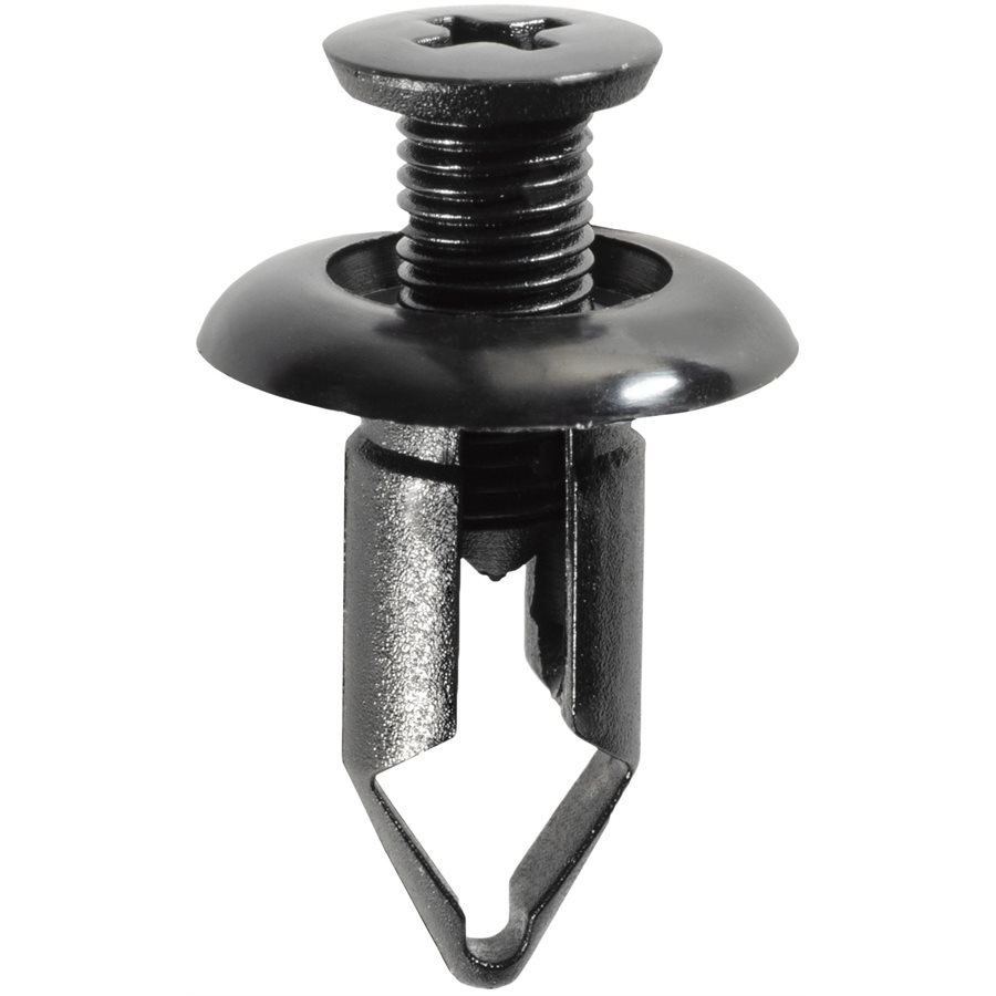 Nissan, Front Bumper Push-Type Retainer, Black Nylon. Phillips Head Diamter 18mm, Stem Length 20mm, Fits Into 9mm Hole. Disco # 12555. Frontier & Xterra 1998 – On. Nissan # 63848-40Y00