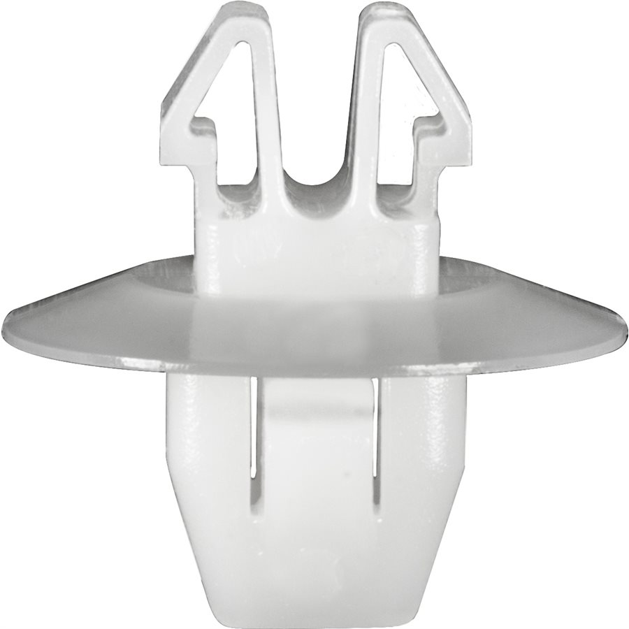 Suzuki, Moulding Clip, White Nylon. Stem Length 9mm, Head Diameter 18mm, Overall Height 18mm. Suzuki Grand Citara, Swift & Xl7 1990 – On. Suzuki # 77553-65D10
