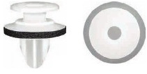 Mazda, Wheel Opening Moulding Retainer Clip, White Nylon With Sealer. Top Head Diameter: 15mm, Bottom Head Diameter: 18.5mm, Stem Diameter: 10.8mm, Stem Length: 14mm. Mazda CX-5 2014 – 2013. Mazda: KD51-51-W24