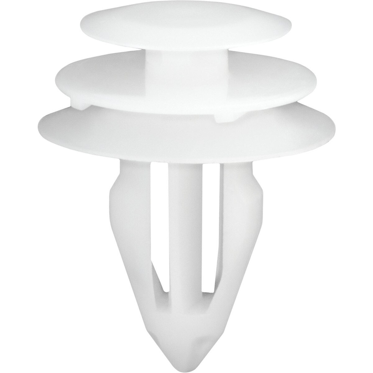 Nissan, Interior Liftgate Trim Retainer, White Nylon, Top Head Diameter: 13mm, Middle Head Diameter: 16mm, Bottom Head Diameter: 18mm, Stem Diameter: 9.5mm, Stem Length: 16mm, Overall Length: 22mm, Infiniti EX35, EX37, FX35, FX37, FX50, QX50, QX70, and Nissan Murano 2017 – 2009, Xterra 2011 – 2000, Nissan # 01553-10481