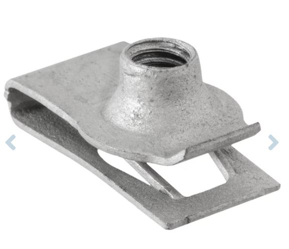 Ford, Metric Extruded U-Nut with Locking Thread, Zinc Organic, Screw Size: M6 – 1.0, Panel Range: .5mm – 2.3mm (.019″ – .090″), Center of Hole to Edge: 14.5mm (9/16″), Ford F-150 & F350 2018 – On, Ford # W705958-S439, Disco # 16471