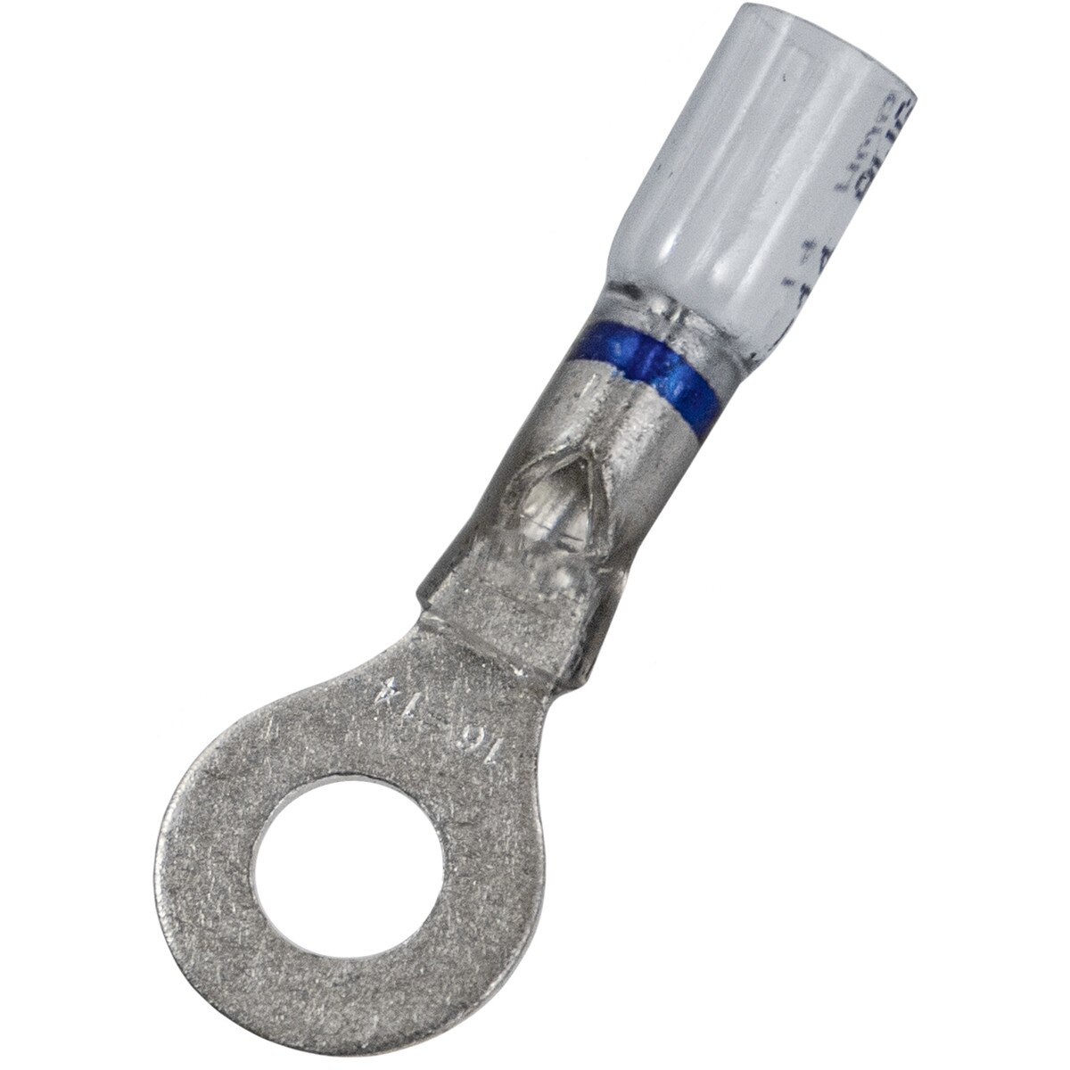 Ring Terminals, Wire Gauge (AWG): 16-14, Color Stripe: Blue, Stud Size: 1/4″, Crystal Clear Seal
