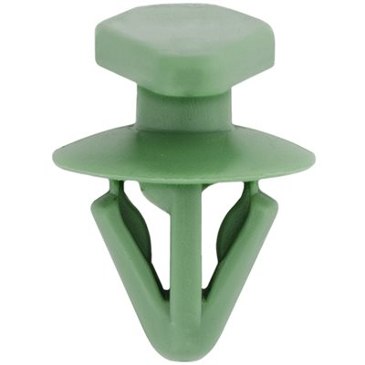 GM, Door Weatherstrip Retianer, Green Nylon , Top Head Size: 6.5mm x 14mm, Bottom Head Diameter: 10mm, Stem Size: 4.7mm x 7mm, Overall Height: 12.5mm, Fits into 5mm Hole, Buick Envision 2018 – 2016; Chevrolet Malibu 2016, GM # 11611664