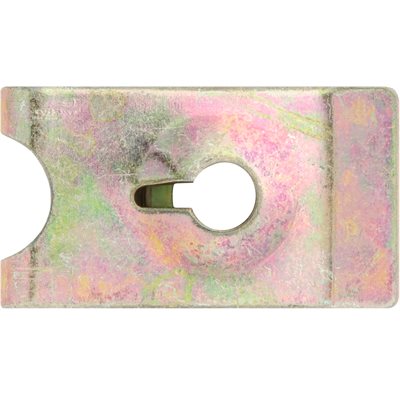 General Purpose, Spring Type U-Nut, Yellow Zinc, Screw Size: M5.5 (#12), Width: 14.5mm, Length: 26mm, Panel Range: 0.8mm-2.5mm, Center of Hole to Edge: 13.5mm.