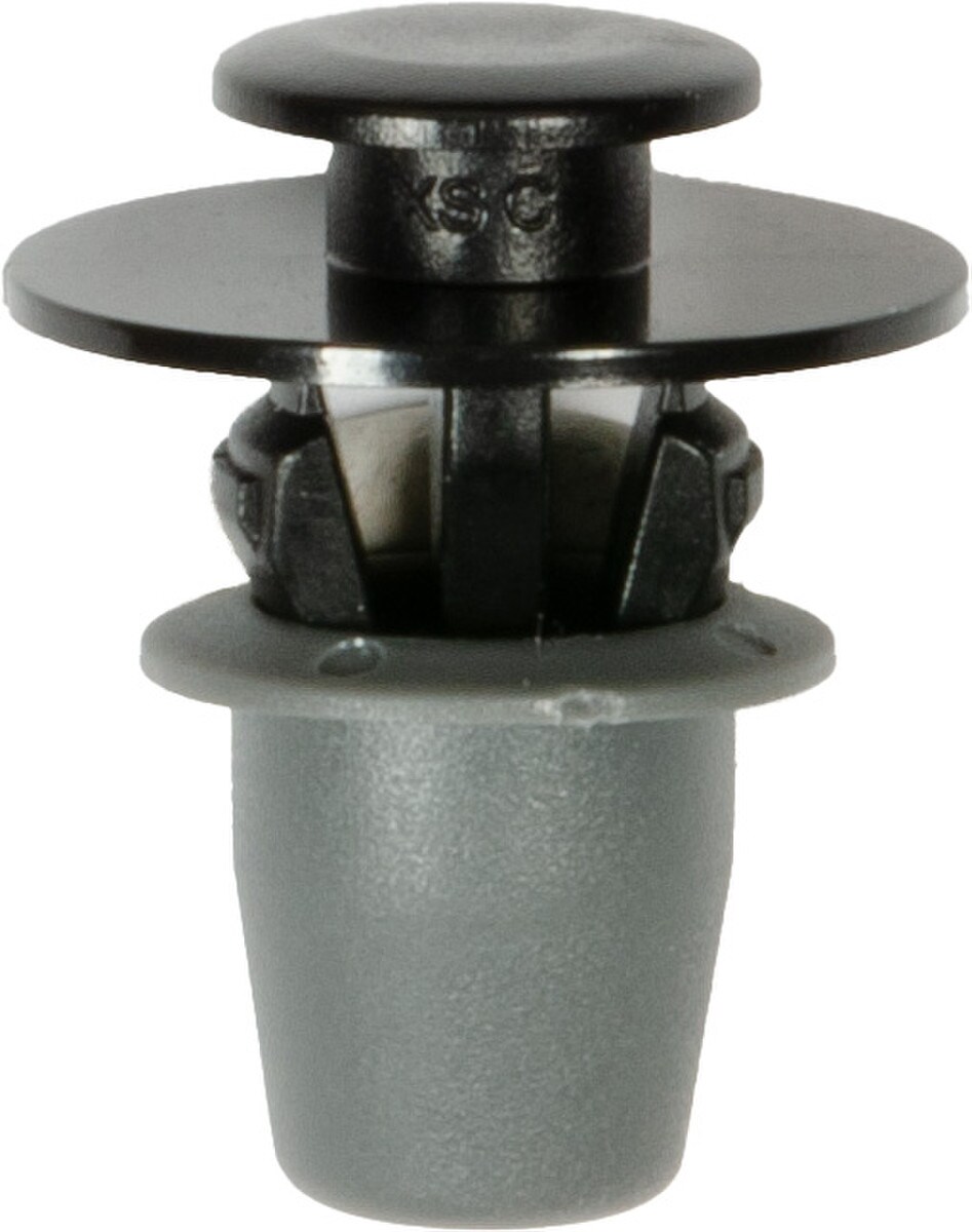 Acura, Wheel Moulding Clip with Sealer, Black Nylon, Top Head Diameter: 10mm, Bottom Head Diameter: 18mm, Stem Diameter: 9mm, Stem Length: 17mm, Overall Height: 22mm, Fits into 9mm Hole, Audi e-tron Quattro 2021 – 2019, Q3 2019 – On, Q5, SQ5 2021 – 2018, Q8 2020 – 2019, SQ8 2020, Audi # 5J0-853-573, Disco # 18806PK