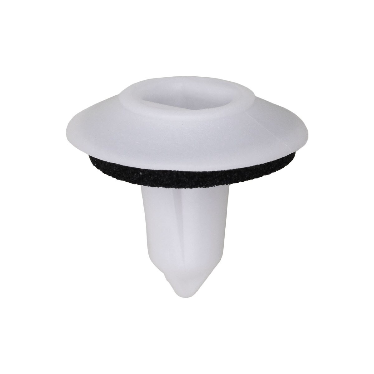 BMW, Trunk Lid Trim Grommet with Sealer, White Nylon, Head Size: 18m, Stem Length: 14.5mm, Overall Height: 16mm, Fits into 8.5mm Hole, Use with Auveco No. 25322