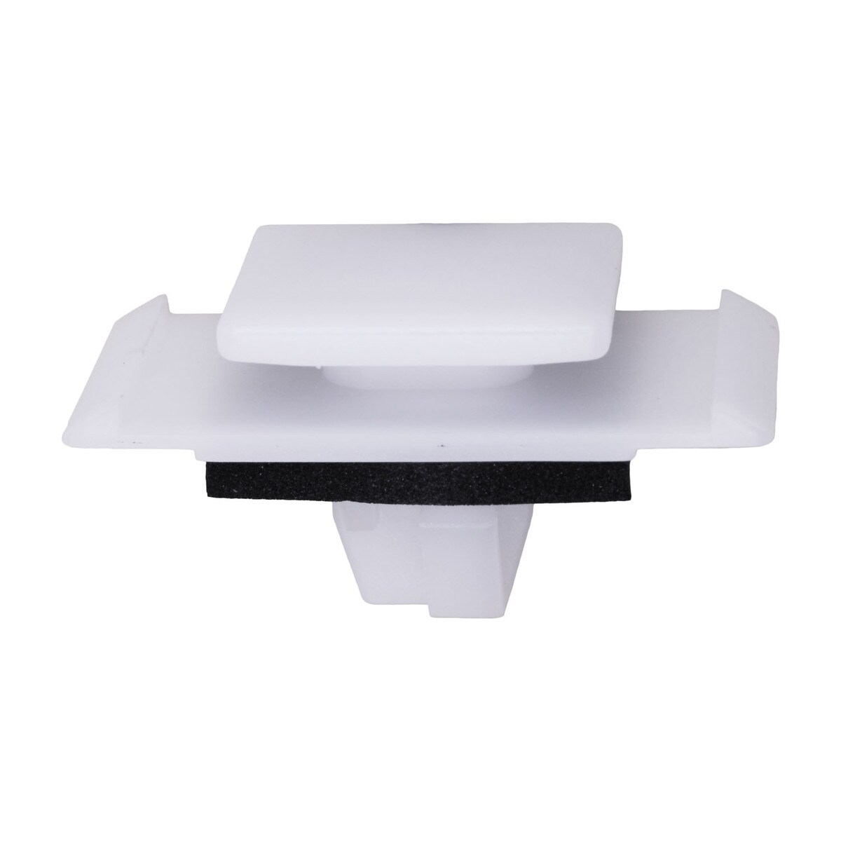 Hyundai & Kia, Rocker Moulding Retainer with Sealer, White Nylon, Top Head Size: 6mm x 18mm Bottom Head Size: 18mm x 32mm Stem Size: 9mm x 13.5mm Stem Length: 10mm Overall Length: 16mm Genesis GV70 2022, GV80 2022 – 2021 Hyundai Ioniq 2020 – 2017, Kona 2022 – 2018, Santa Fe 2020 – 2019, Palisade, Sonata 2020 – On Kia K5 2021 – On, Telluride 2020 – On, Hyundai & Kia # 87758-G2000, # 87767-J9000, Disco # 18821
