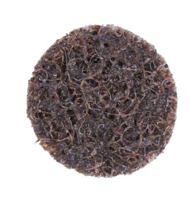 • Non-woven nylon fiber embedded with aluminum oxide abrasive grain • For general grinding, blending, rust removal, clean-up and paint removal • Thicker, longer lasting material • 1” discs are great for tight corners and areas • Fast and easy to change twist-to-lock mounting • Common Uses (by color): • Brown: Cleaning, deburring, finishing Also used for removing rust and residue • Maroon: Removing rust and grime • Blue: Finishing and polishing