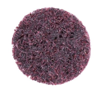 • Non-woven nylon fiber embedded with aluminum oxide abrasive grain • For general grinding, blending, rust removal, clean-up and paint removal • Thicker, longer lasting material • 1” discs are great for tight corners and areas • Fast and easy to change twist-to-lock mounting • Common Uses (by color): • Brown: Cleaning, deburring, finishing Also used for removing rust and residue • Maroon: Removing rust and grime • Blue: Finishing and polishing