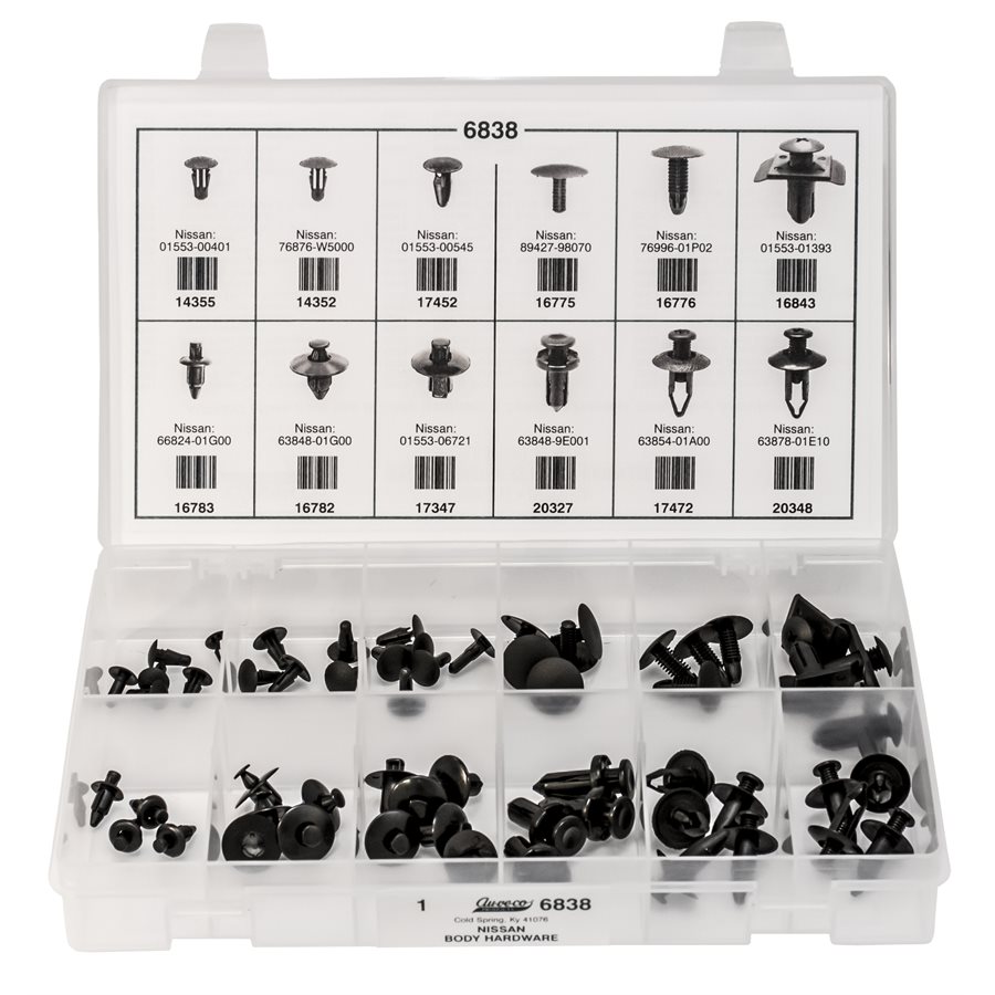 Nissan Body Hardware, Quik-Select 6800 Series Assortment Kit, Packed In A 12 Compartment Translucent Box, 12 Varieties – 58 Pieces
