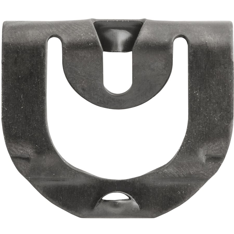 GM, Windshield & Rear Window Reveal Moulding Clip, Black Phosphate. GM: 1966 – On. GM # 7634583, 8734067. Formerly CP # 65-1121, 67-3093, 69-3274, 70-3403.