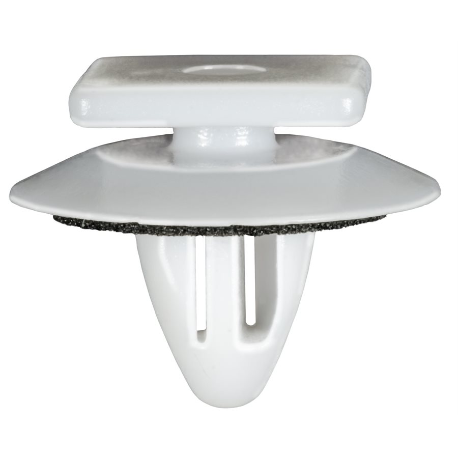 Hyundai, Garnish Moulding Retainer, White Nylon With Sealer. Top Head Size 13mm x 13mm, Bottom Head Diameter: 20mm, Stem Length: 11mm, Fits Into 7.5mm Hole. Hyundai Veloster 2012 – On. Hyundai: 86179-2V000