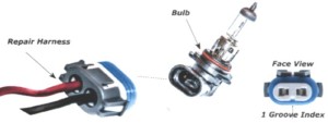 Repair Harness For Hi-Temp Socket Halogen Headlight Assembly, Hi-Intensity (Hi-Heat Output) Bulbs, Connector Rated At 300-C/572-F. Use With Bulb 9006, 2-14Ga. 6″ Leads