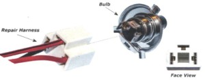 Repair Harness For Hi-Temp Headlamp, Hi-Intensity (Hi-Heat Output) Bulbs, Connector Rated At 300-C/572-F. Use With Bulb # H4, 3-14Ga. 6″ Leads