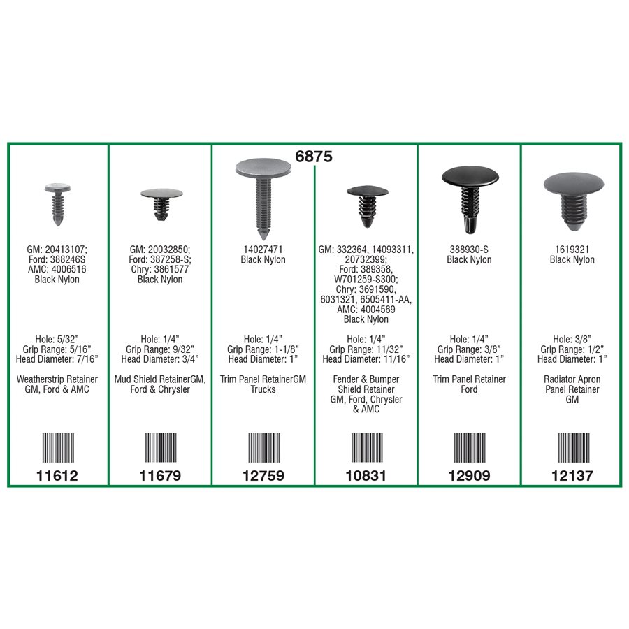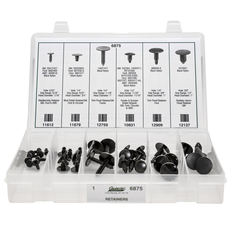 GM, Ford, AMC & Chrysler, Tree Retainers, 6800 Quik-Select Kit, 6 Varieties – 45 Pieces