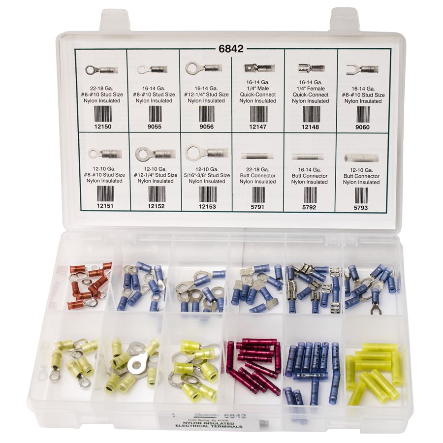 Nylon Insulated Solderless Terminals, 6800 Quik-Select Kit, 12 Varieties – 100 Pieces