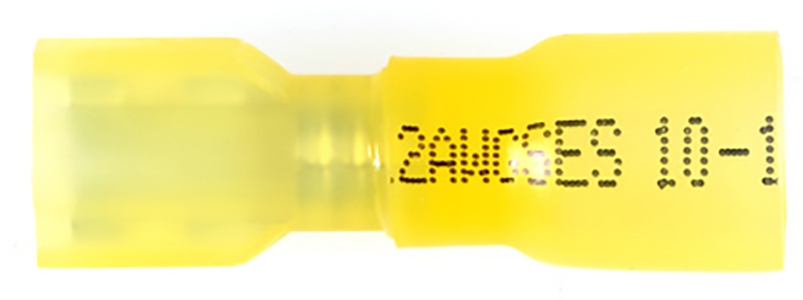 Krimp & Heat Seal Female Quick-Slide & Tab Disconnects, Yellow Nylon. Wire Gauge 12-10, Heat Shrink Tubing