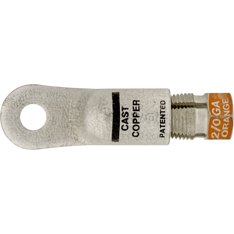 Compression Lug, Cast Copper, Tin Plated, Orange. For Wire Size 2/0, Stud Size 3/8 Inch